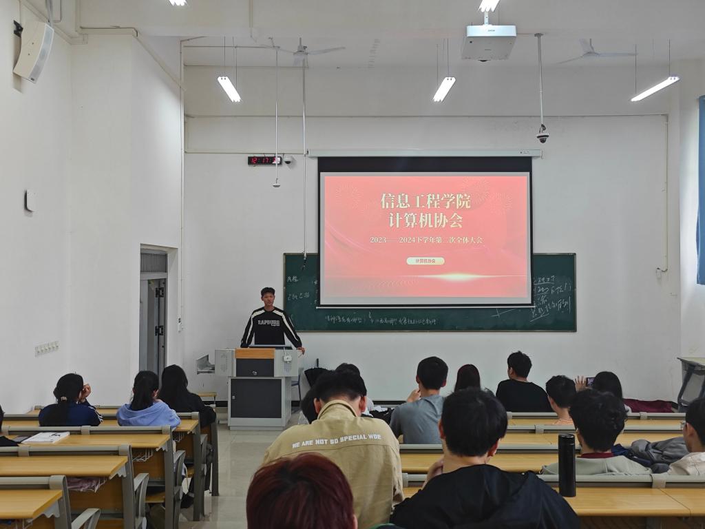 本站讯(信息工程学院 黄彪 学生记者 欧阳安)为加强计算机协会成员之间的交流合作,推动协会发展,4月25日,信息工程学院计算机协会在智云楼阶梯教室B102召开四月全体大会,指导老师周俊杰及全体成员参会。会议由协会副会长邱润辉主持。