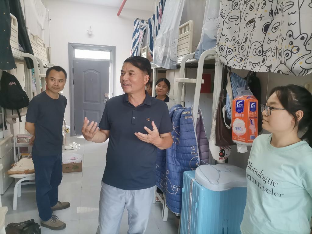 本站讯(信息工程学院 李纪杨)新学期伊始,为及时掌握学生返校后思想动态,进一步做好服务工作,9月1日下午,信息工程学院在校纪委书记刘平涯的带领下深入学生宿舍开展走访活动。