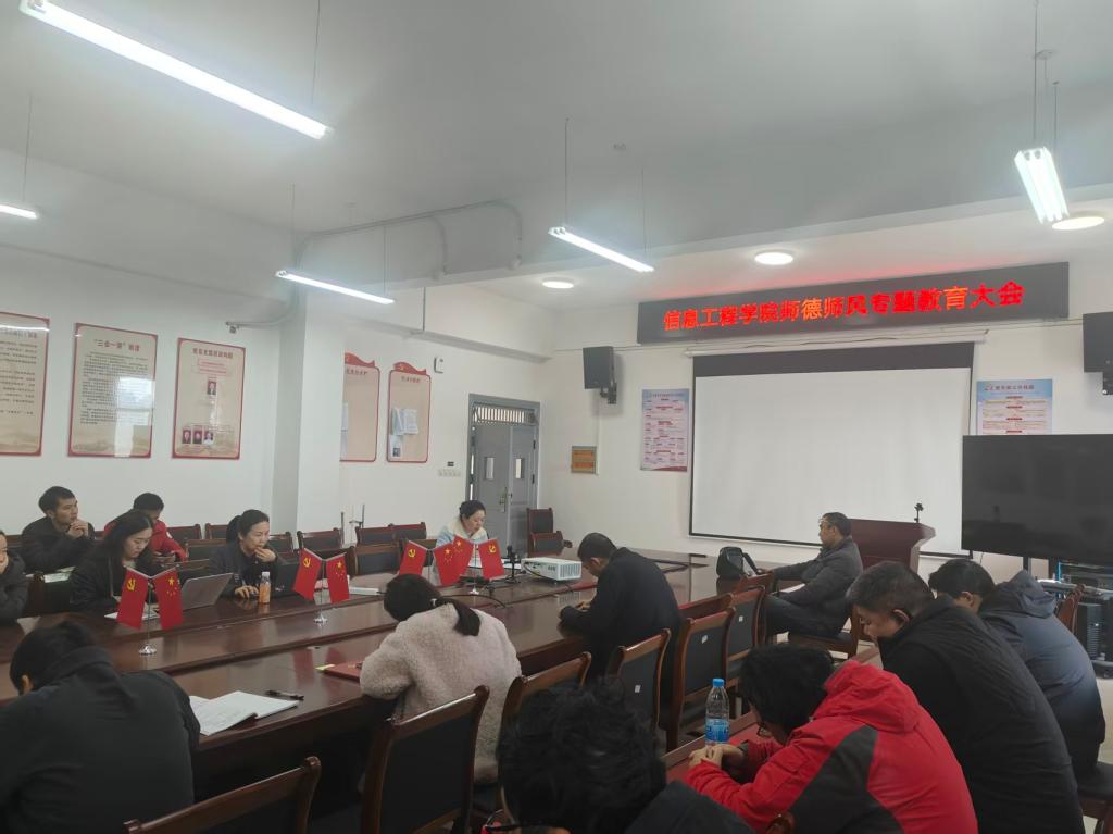 本站讯(信息工程学院王乐)为加强教师队伍师德修养,落实巡察整改工作要求,3月 10日,信息工程学院在智云楼 B501召开师德师风专题教育会。会议由副院长陈根金主持,全体教职工参加。