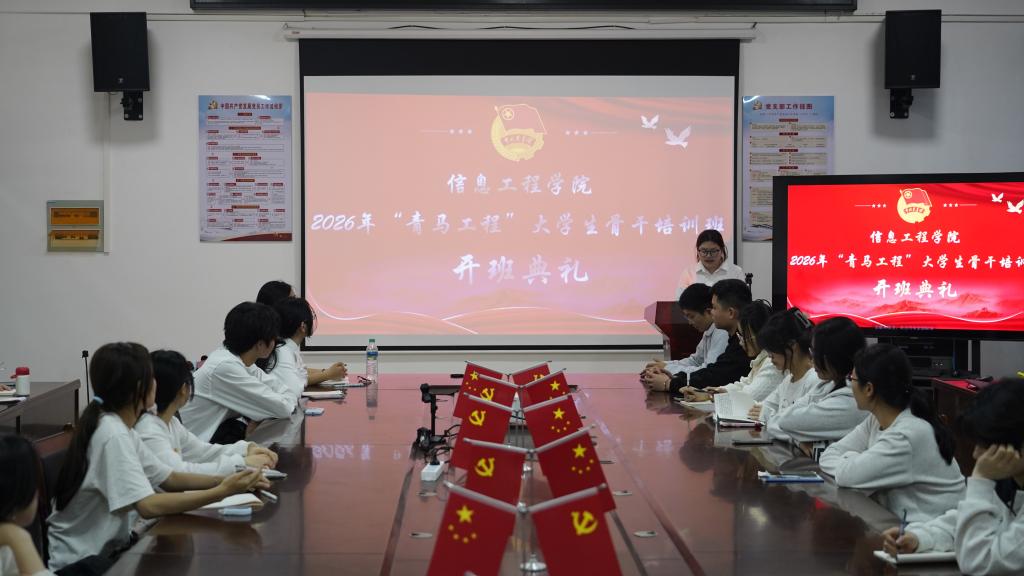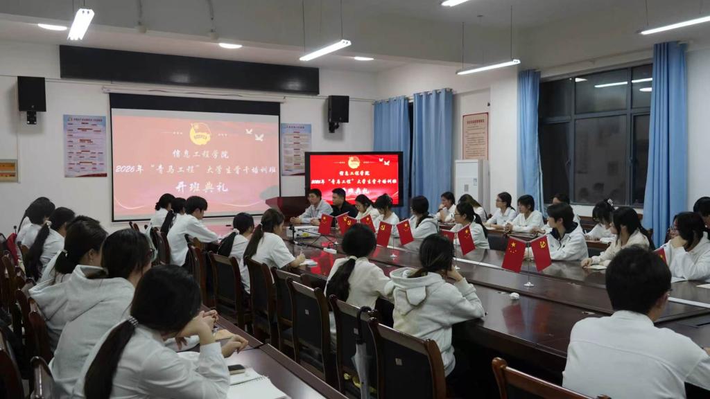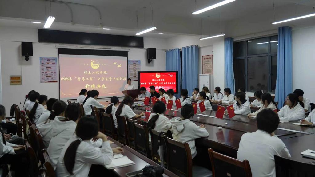 为深入实施青年马克思主义者培养工程,着力为党和国家锻造坚定可靠、素质过硬的青年政治骨干,4月7日晚,信息工程学院在智云楼B501举行2026年“青马工程”大学生骨干培训班开班仪式。学院党总支副书记李纪杨,团总支负责老师黄彪出席仪式,本期全体“青马”学员参加。