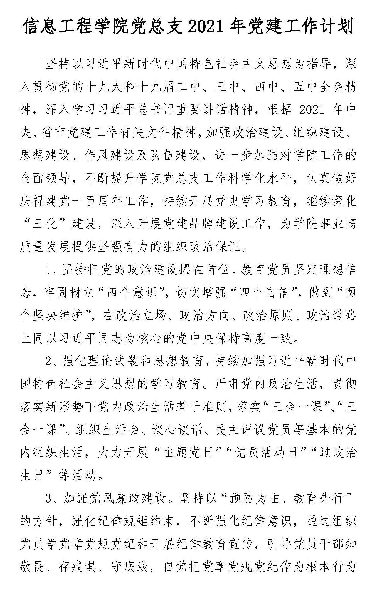 信息工程学院党总支2021年党建工作计划